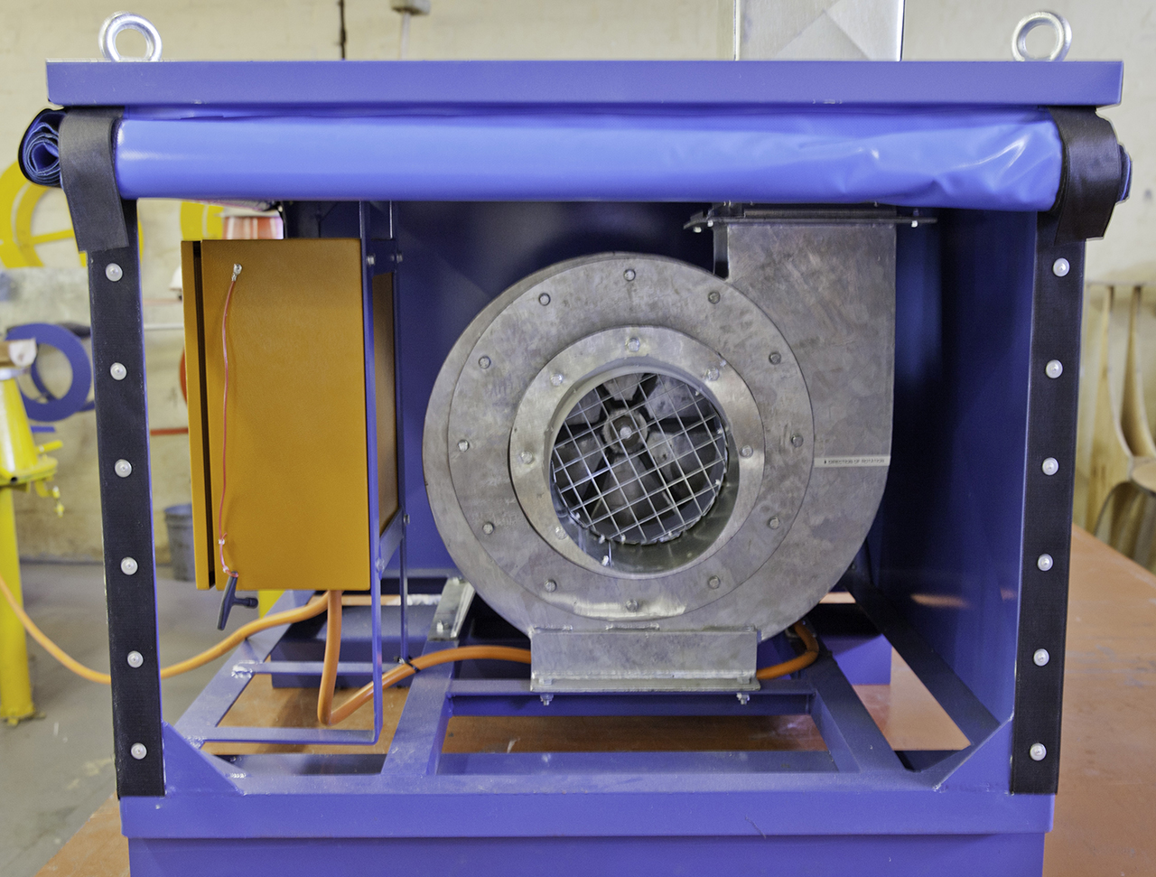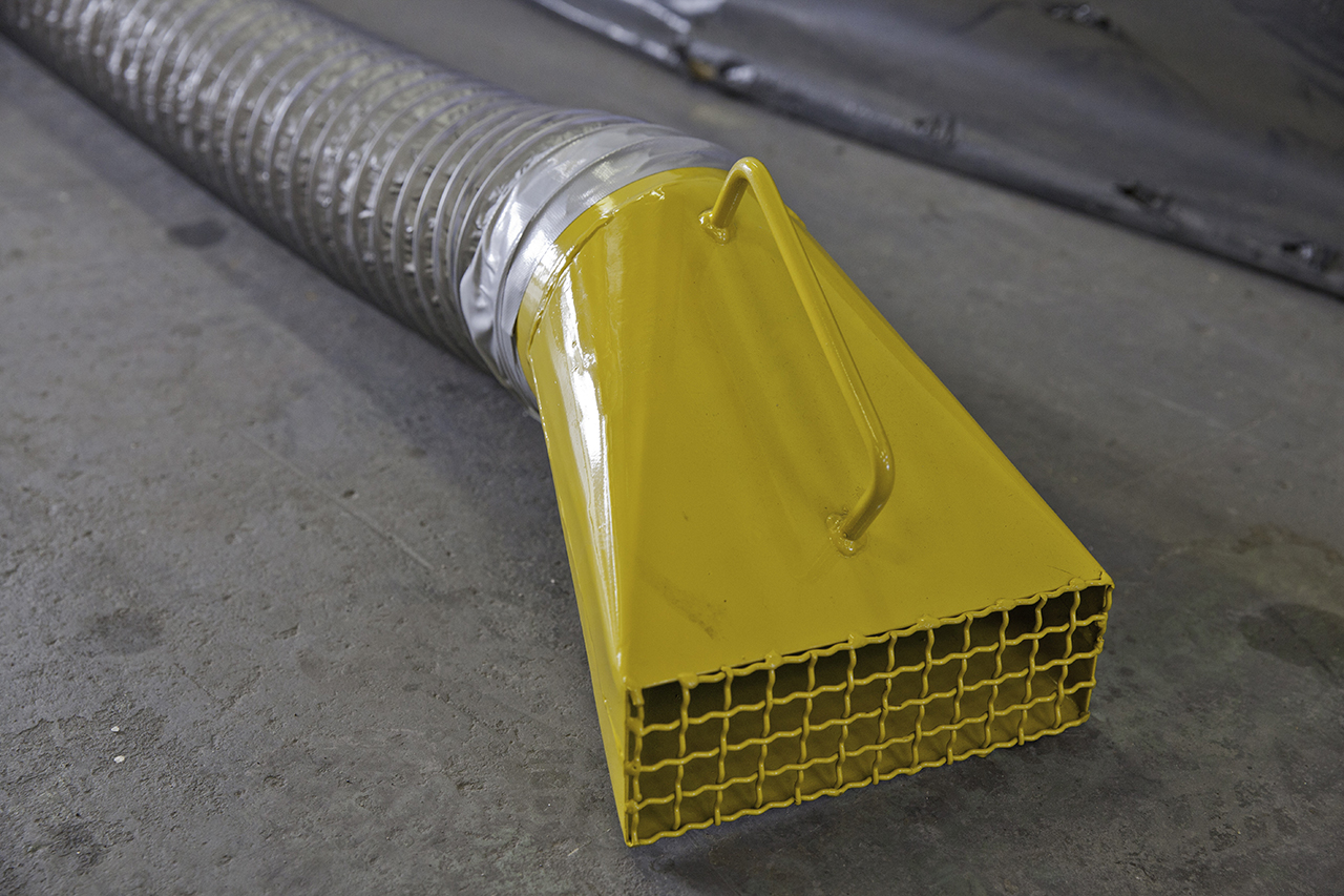 All electrical components including the motor are certified flame proof and units come with required power cabling. Each unit is fitted with a variable speed drive to increase or decrease airflow volume. Units can be supplied with tank saddle vents, splitter boxes, welding hoods and the pre-specified ducting required.